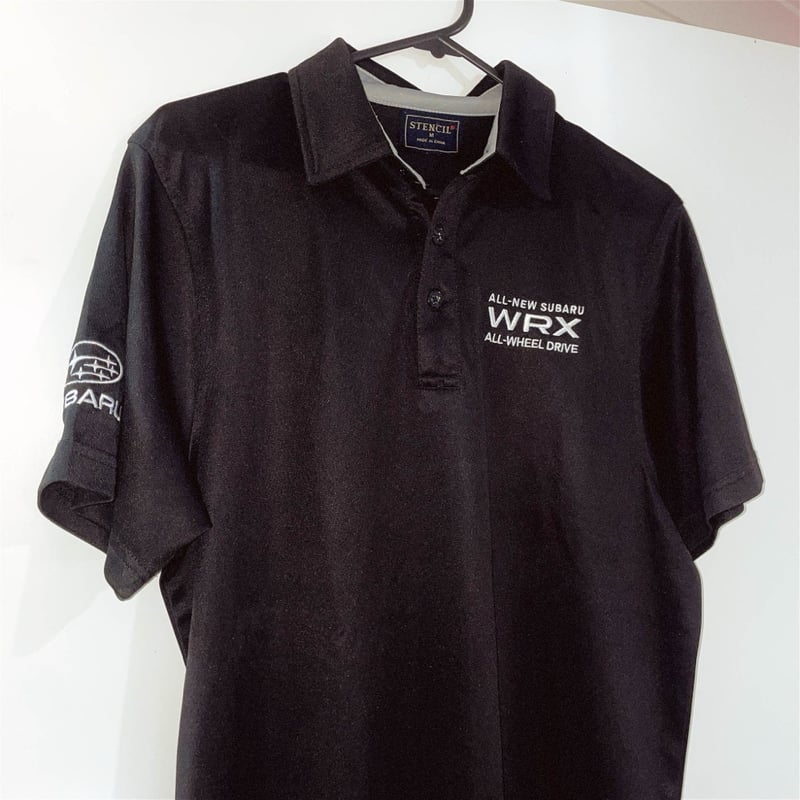 Black Subaru WRX polo shirt w/ embroidered white graphics - Size M!